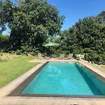 Dále je k dispozici rychlovarná konvice, trouba a kuchyňské nádobí. Hosté si mohou odpočinout také v sezónním venkovním bazénu.
